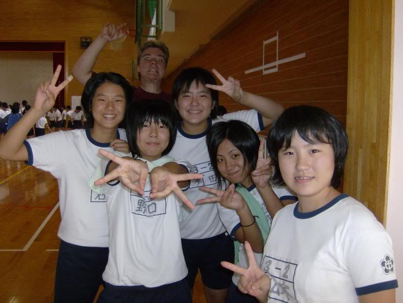 De school voelde echt veel gezelliger aan dan de gemiddelde Nederlandse school. Het complex was zeg maar een groot vierkant, maar dan met een groot zandveld in het midden waar je kon sporten. Als eerste was er een openingsceremonie in de gymzaal, waar we binnenkwamen en vervolgens begonnen alle Japannertjes (van rond de 14 tot 16 jaar) te klappen. We mochten ook meteen met z'n negenen voor al die Japanners gaan zitten (102 in totaal geloof ik), waarna we ons moesten voorstellen, en de leerlingen ons vragen gingen stellen (waaronder of we een vriendje (aan de meisjes natuurlijk, duh :P) dan wel vriendinnetje hadden, wat best wel brutaal is voor een Japanner die je net ontmoet hebt geloof ik :P).